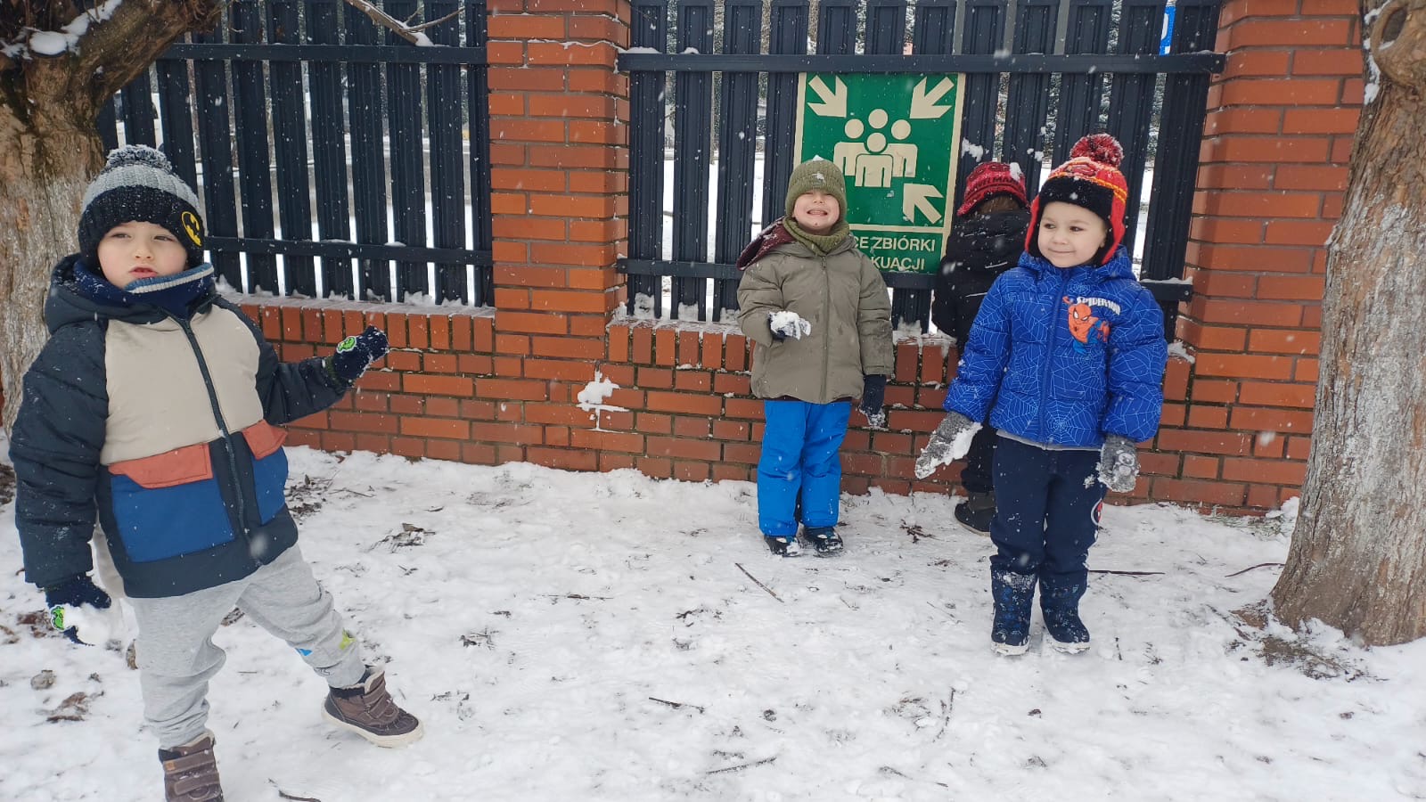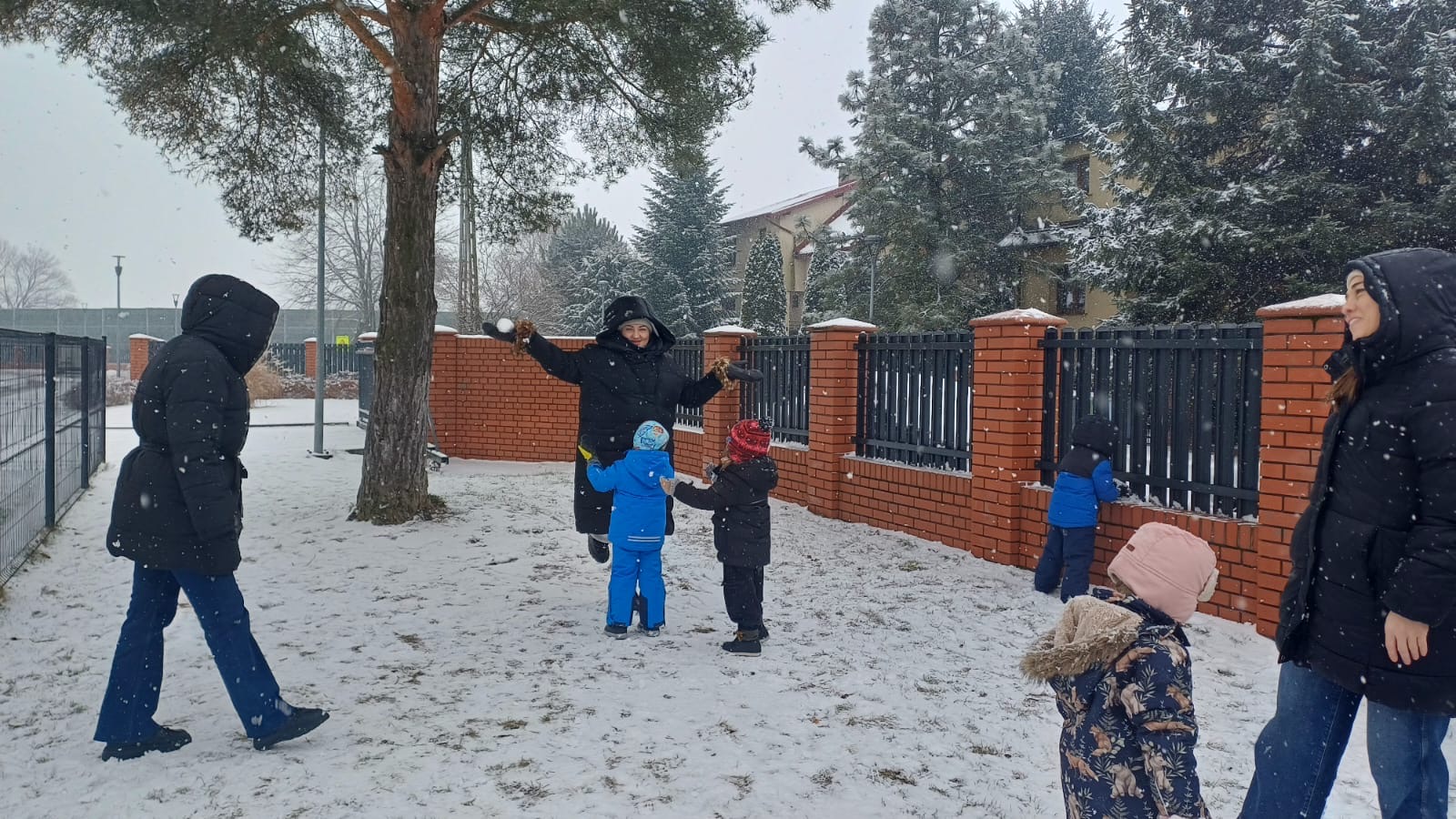 Korzystając ze wspaniałej, zimowej aury, dzieci z radością oddały się zabawom na świeżym powietrzu. Było lepienie bałwana, tworzenie śnieżynek oraz mnóstwo ruchu i śmiechu na śniegu. Zimowa sceneria sprzyjała wspólnej zabawie i dostarczyła dzieciom wiele radości. To był piękny, śnieżny dzień! ❄️